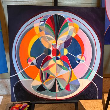 These 3 abstract figurative oil paintings are painted on 100cm X 100cm canvases and are part of my Circles of Belonging Series